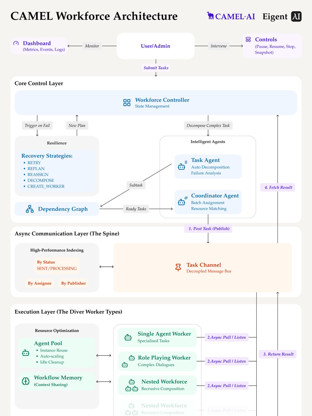他从CAMEL基础出发,构建了高效的workforce系统,支持并执行、容错与递归,真正把研究落地成桌面生产力工具。