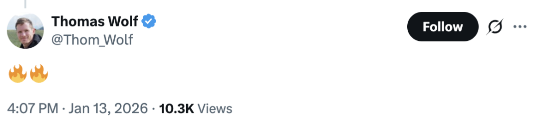 Hugging Face联合创始人Thomas Wolf看到后直接狂赞,社区的热情被瞬间点燃。