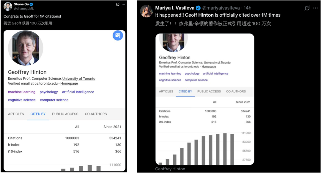 他是继Yoshua Bengio之后,全球第二位论文引用量突破百万的学者。