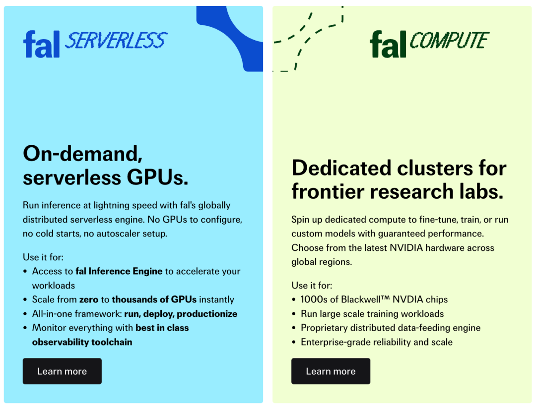 fal.ai,是在这个背景下跑出来的一家生成式媒体 infra 公司。通过一套统一、低延迟的 API 和云端推理平台,让开发者和企业,能高性能调用图像、视频、音频等多模态生成模型。