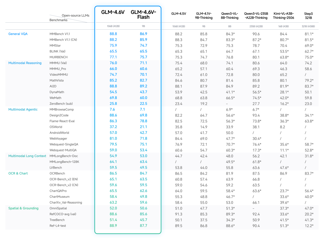 后续到了12月,智谱GLM-4.6V多模态系列正式发布,包含9B与106B参数版本。