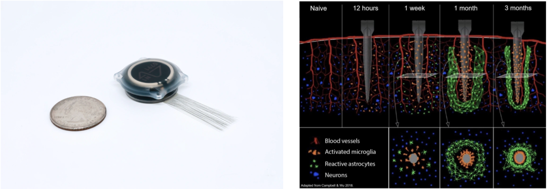 早期植入物:64根超细线程、每根线程有16个电极、总计1,024个记录通道