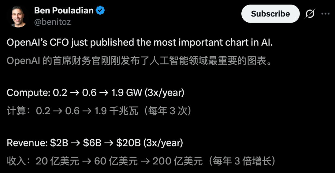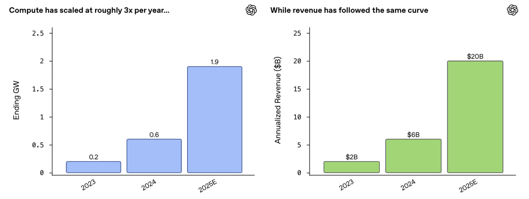 如此一来,OpenAI得以实现三年内算力9.5倍增长、收入10倍增长并冲破200亿美金的壮举。