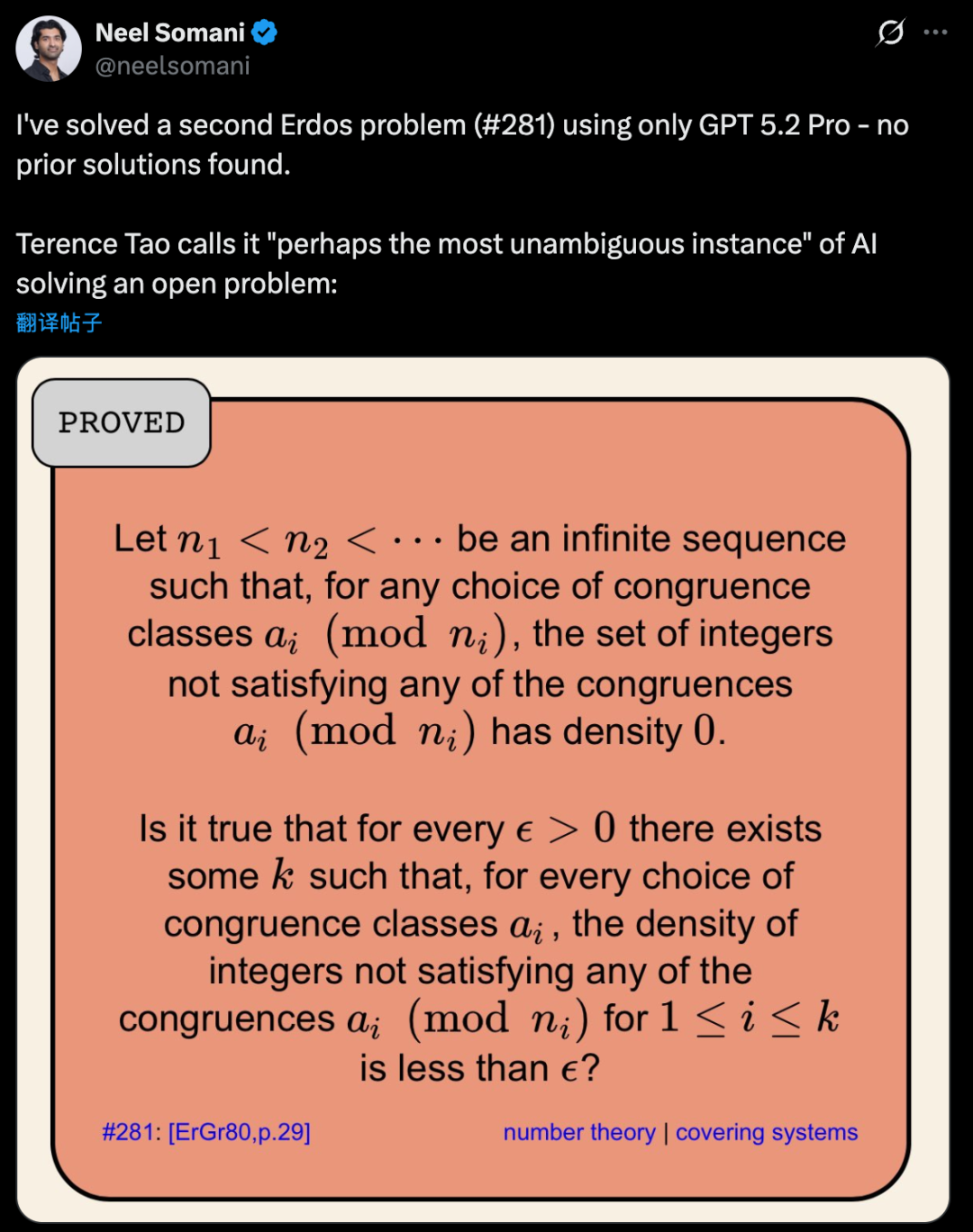 OpenAI最新模型GPT-5.2 Pro刚刚独立证明了一道埃尔德什猜想。
