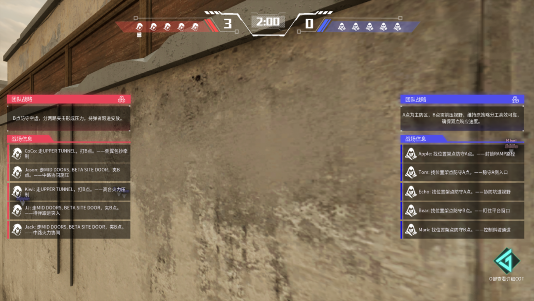 角色视角下,可查看当前角色所在队伍的Commander下发给该角色的团队战略以及个人任务,同样双击O键查看详细CoT内容。