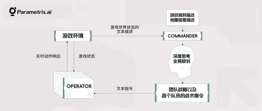 它不参与具体操作,相反专注于从感知到决策的高阶能力,涵盖地图分析、敌方意图判断以及战略方针制定等复杂任务。
