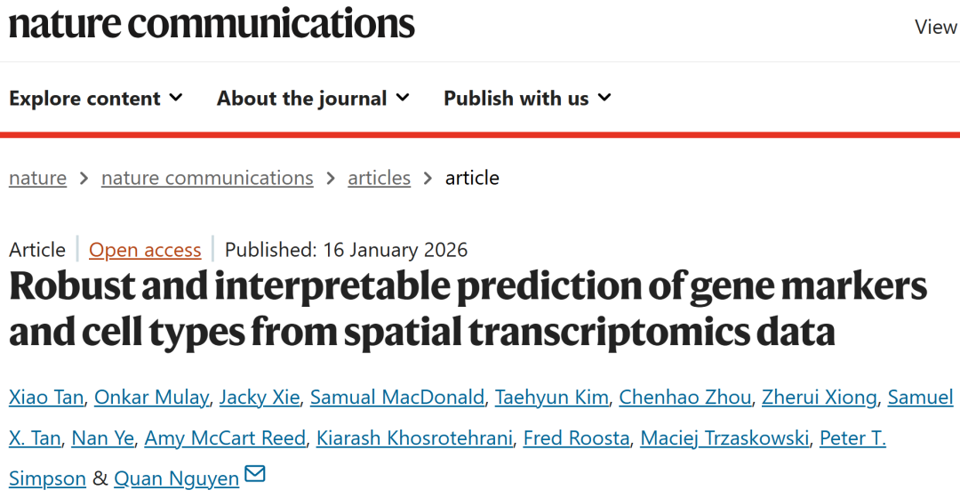 Tan, X., Mulay, O., Xie, J. et al. Robust and interpretable prediction of gene markers and cell types from spatial transcriptomics data. Nat Commun (2026).