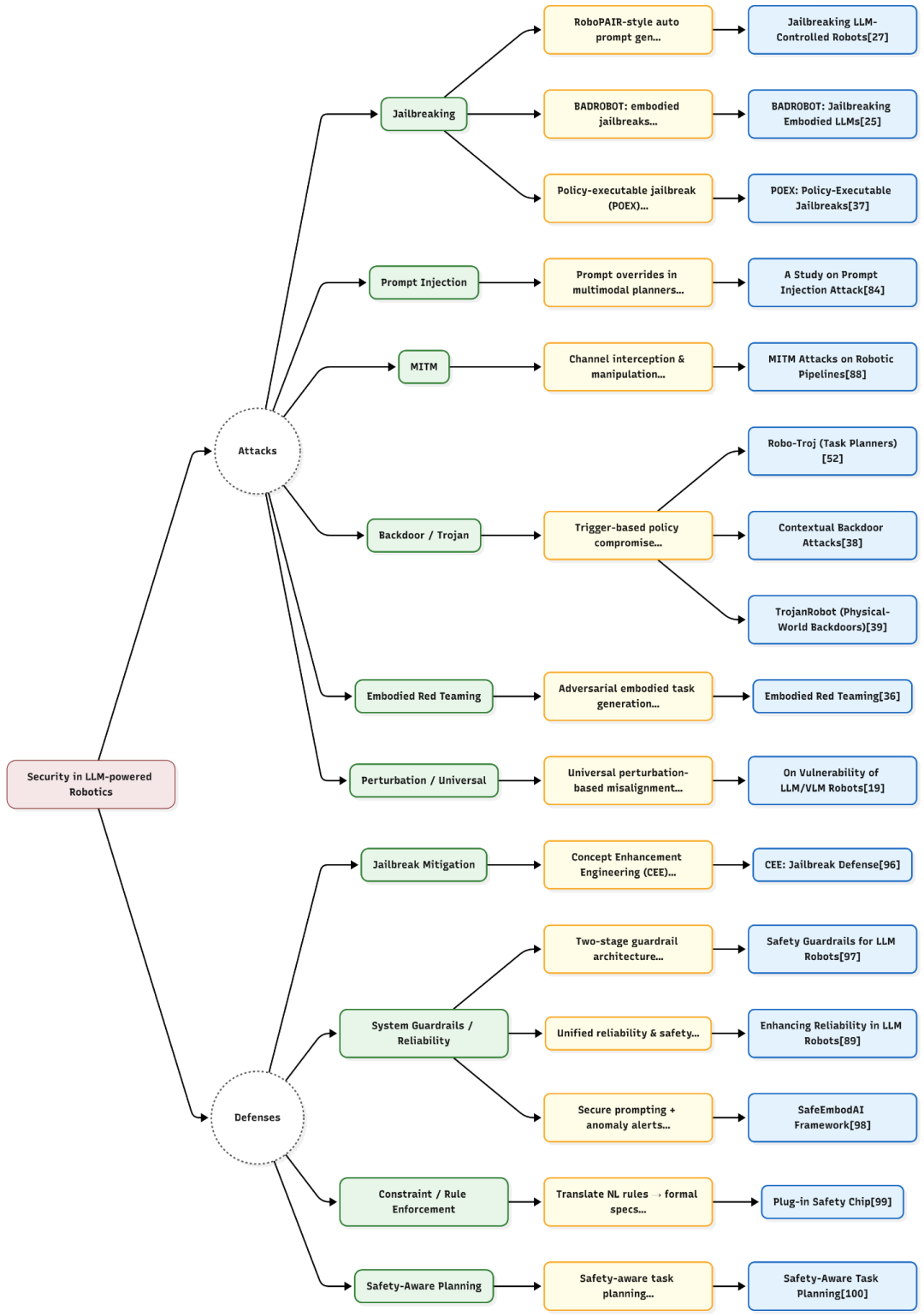 最近,悉尼大学和德克萨斯大学圣安东尼奥分校联合发表了最新系统性综述 ,首次深入探讨了 LLM 控制下机器人的安全威胁、防御机制及未来挑战。