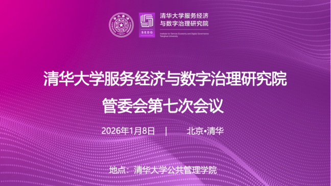 2026年1月8日,清华大学服务经济与数字治理研究院(以下简称“研究院”)管委会第七次会议在清华大学公共管理学院召开。清华大学服务经济与数字治理研究院副院长、文科建设处处长、智库中心主任、公共管理学院教授杨永恒主持会议。国务院原副秘书长、中国社会科学院大学教授江小涓,清华大学服务经济与数字治理研究院学术委员会主任、文科资深教授、苏世民书院院长、公共管理学院教授、人工智能国际治理研究院院长薛澜,清华大学服务经济与数字治理研究院管理委员会主任、应急管理研究基地主任、公共管理学院党委书记、教授彭宗超,清华大学服务经济与数字治理研究院管理委员会委员、中国电子数据治理工程研究院院长、公共管理与决策科学实验室主任、公共管理学院教授孟庆国,清华大学服务经济与数字治理研究院副院长、公共管理学院副院长、公共管理学院长聘副教授高宇宁,清华大学服务经济与数字治理研究院研究客座研究员、中国科技政策研究中心副主任、科技发展与治理研究中心学术委员会秘书长、公共管理学院教授、人工智能国际治理研究院副院长梁正,清华大学服务经济与数字治理研究院客座研究员、北京第二外国语学院经济学院副院长、教授罗立彬,清华大学服务经济与数字治理研究院助理研究员孟丽君、靳景等列席会议。