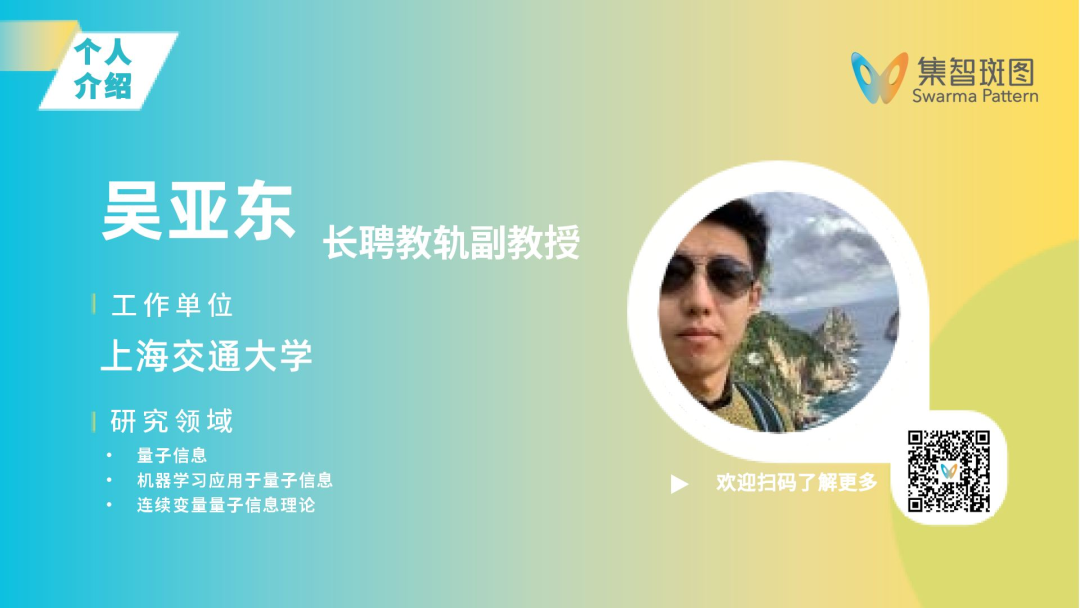 吴亚东,2024年初加入上海交通大学,担任John Hopcroft计算机科学中心长聘教轨副教授,研究方向聚焦量子信息理论及其机器学习的交叉,特别是AI应用于量子信息和量子计算,以及连续变量量子信息理论。本人入选了国家级和上海市的海外高层次青年人才项目,代表性成果发表在Nature Communications和Physical Review Letters等期刊上,并被Nature Computational Science评选为研究亮点,受到国内外知名科技媒体报道。更多信息参见