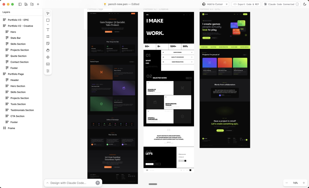 但Pencil走的路子是「设计即代码」,从根上就把设计和代码绑在一起了。