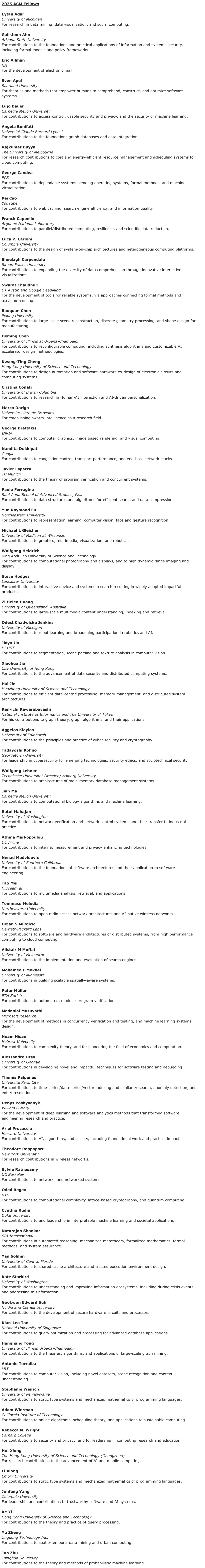 ACM将于6月13日在旧金山举行颁奖晚宴,正式表彰2025年度Fellow。