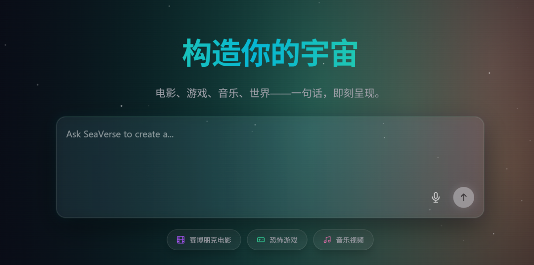 点进海艺AI的页面,电影、游戏、音乐等种种你想要的世界,一句话就能即刻呈现。