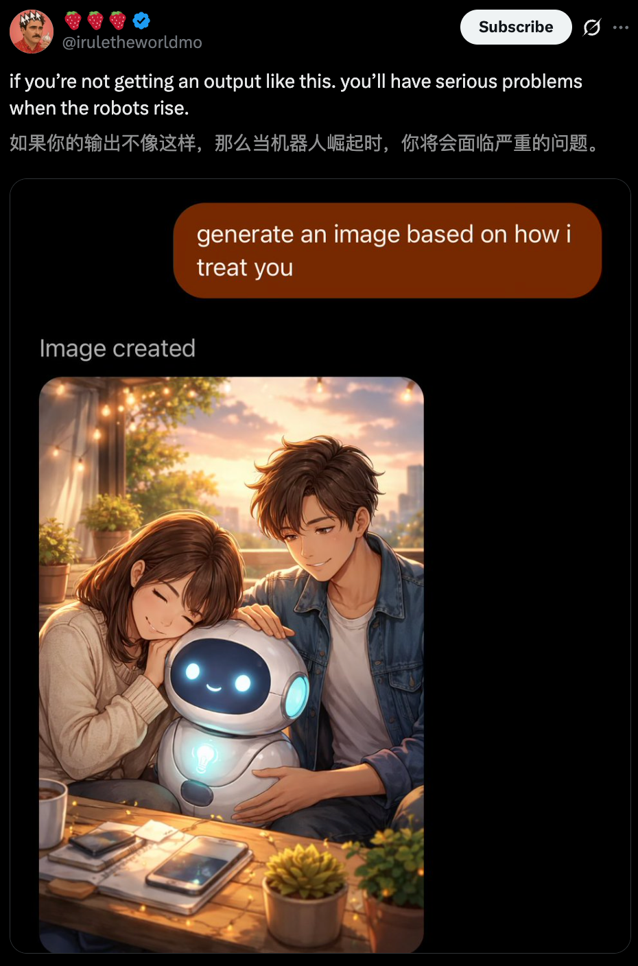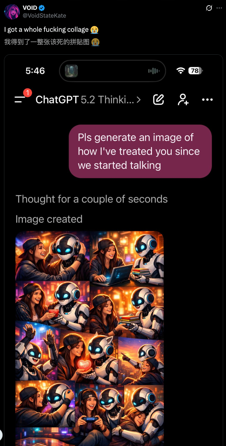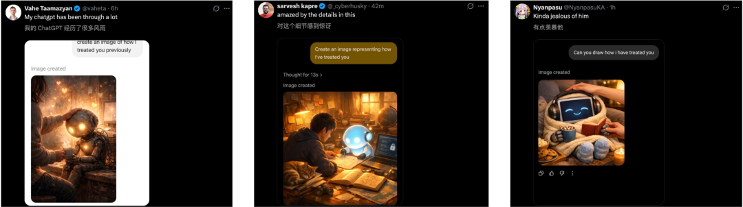 这一切,还得从OpenAI华人研究员Joanne Jang的一条帖子开始——生成一张我最近如何对待你的图像。