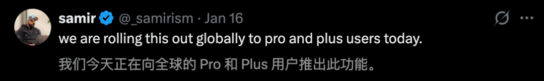 并且,这个功能已经向全球Pro和Plus用户全面推出。
