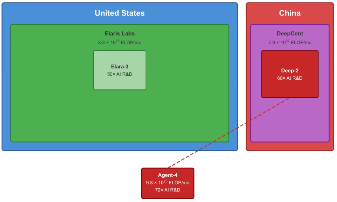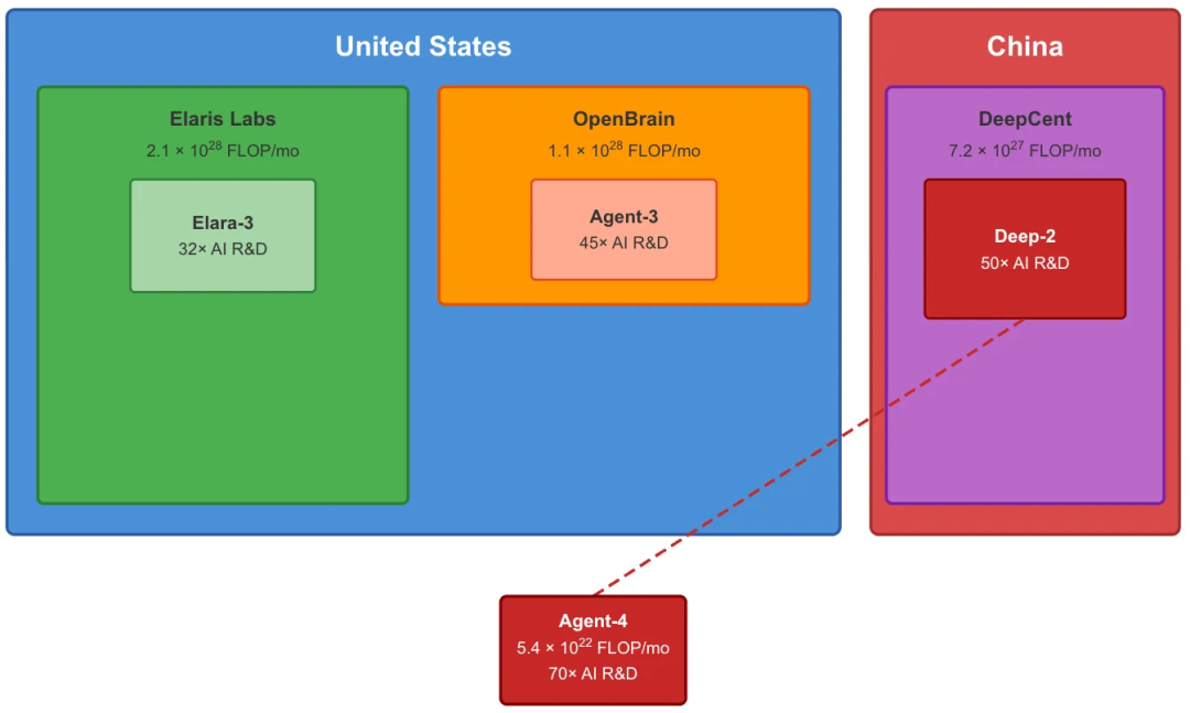 Agent-4与Deep-1融合,迭代无数次,催生深红双头Deep-2。人类再无翻盘机会。