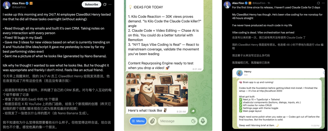 自从用上Clawdbot之后,Alex Finn称,自己已经两天都没用Claude Code了。