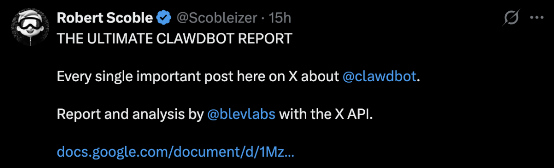 一位开发者Robert Scoble做了一个「终极Clawdbot报告」,已经被人们传疯了。