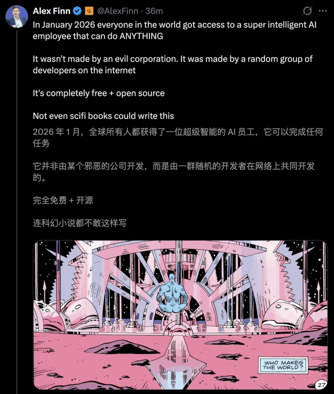 关键是,完全开源+永久免费,就连科幻小说也不敢这么写。