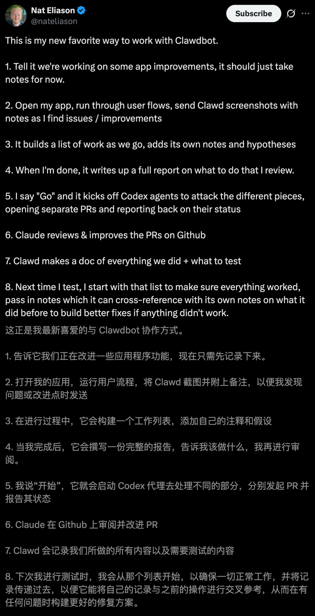 去年12月底,「Clawdbot」早已在Steinberger盘点2025工作流一文中出现了。