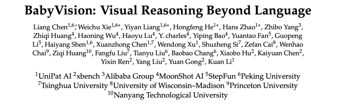 这一结论来自 UniPat AI 团队及其合作者发表的最新研究——他们推出了 BabyVision 评估框架,旨在独立于语言知识评估 MLLM 的核心视觉能力。