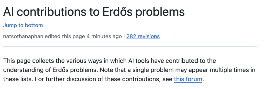 陶哲轩甚至开了个wiki页面,专门记录「AI对Erdős问题的贡献」。