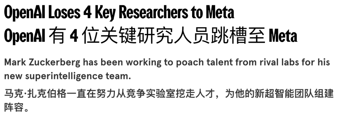 2025-2026年,多位核心人才流失,包括Shengjia Zhao和Jason Wei,多数转向Meta Superintelligence Lab。