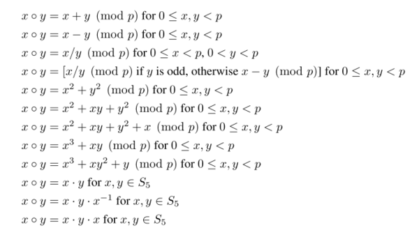1. 群运算(Group Operations):这是模运算的推广。Chughtai 等人[4]训练MLP模型在阶数为
