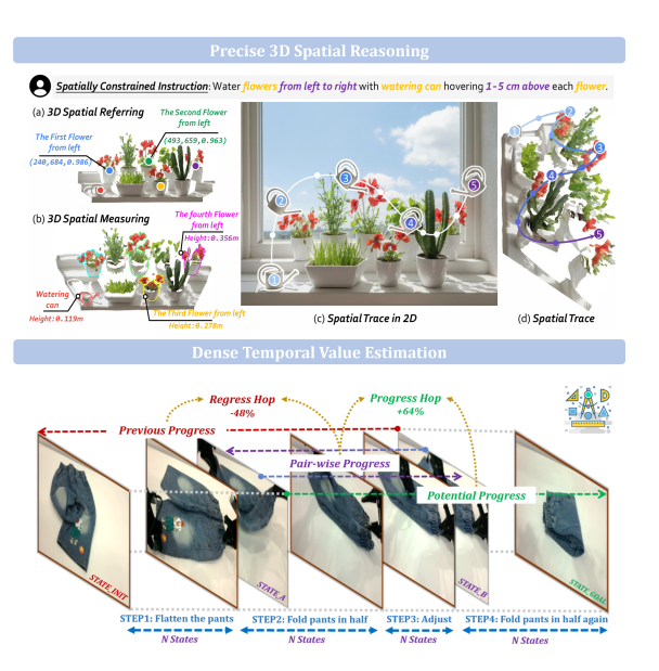 这就要求新一代具身模型,需要把空间能力从“2D 指点”升级为“精确 3D 规划”,满足物理世界的度量约束与可执行性要求。