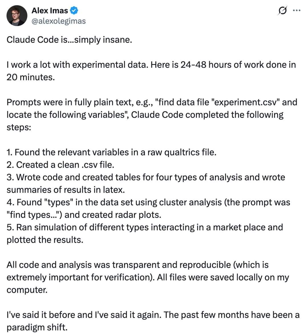 同一时间,芝加哥大学教授Alex Imas也在X上发出惊叹: