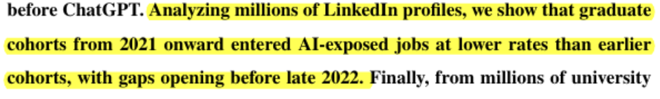 计算机、商务、金融等高AI暴露率的职业,其失业风险在2022上半年已远超餐饮与建筑业。