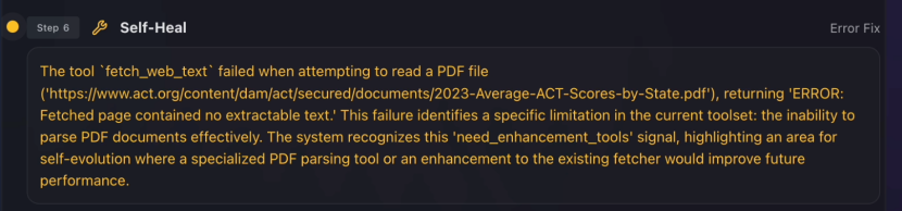对话结束后,系统会对整个过程进行复盘,更新自己的工具库,并将迭代过程蒸馏、沉淀为可复用的方法论。
