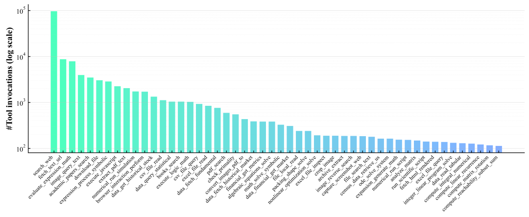 下面这张图更有意思,这是这个Agent最爱用的50个工具。