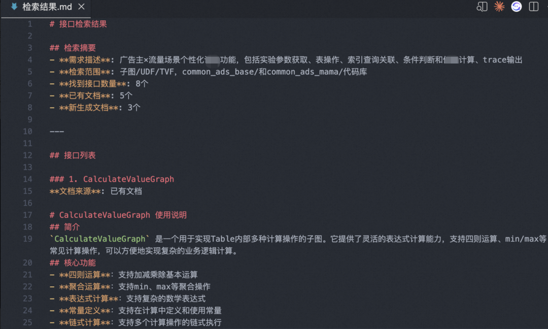 基于编码计划的产出规范,Agent根据用户的输入并与用户进行多轮交互,以确定需求所涉及的各种细节用于产出正确、完整的编码计划文档。在这一过程中,会额外调用「接口检索Agent」来针对本次任务涉及的功能在CommonAds代码库中找寻可复用的高质量接口: