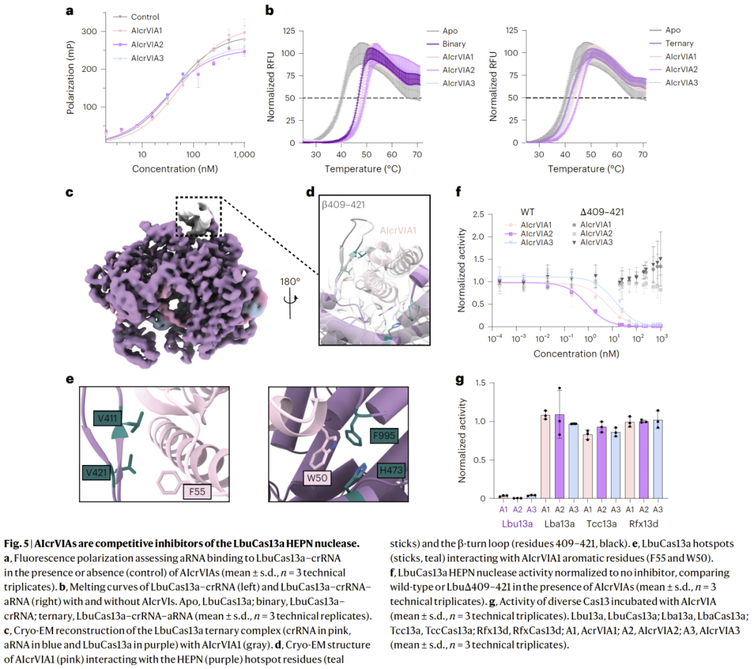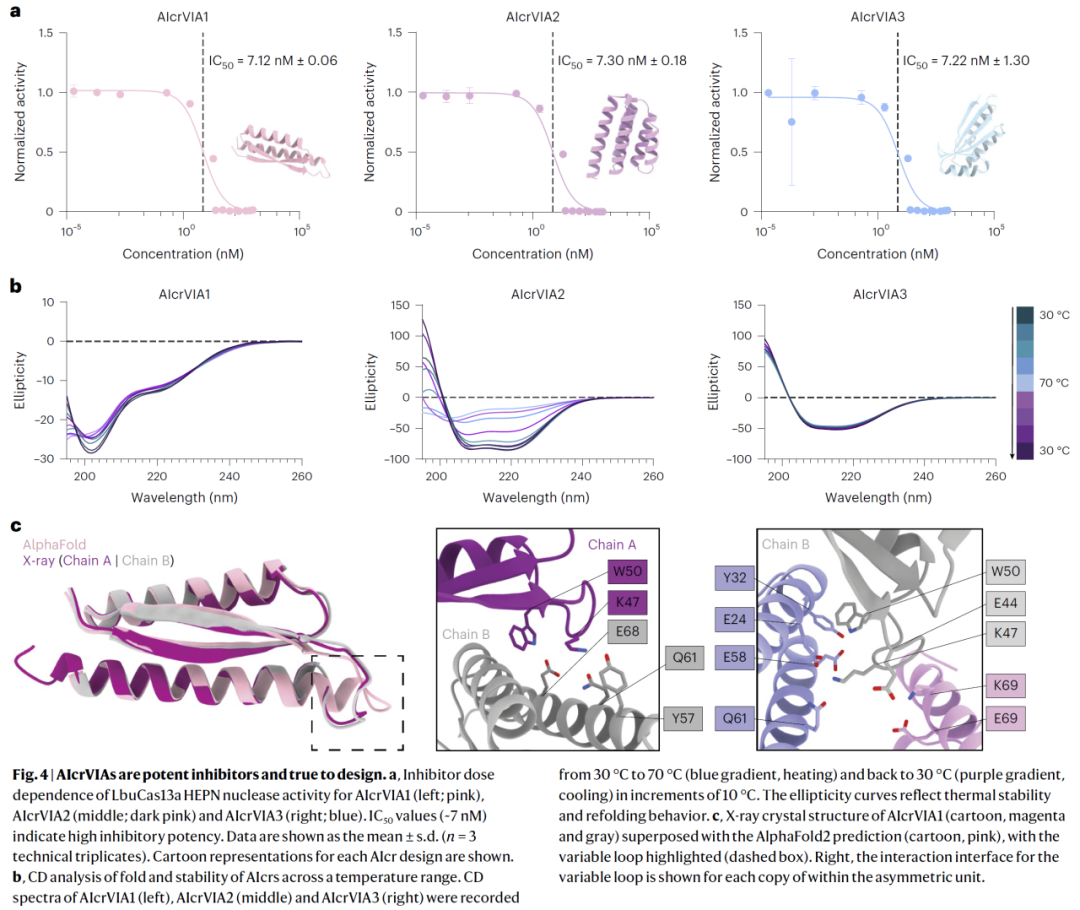 体外实验表明,多种 AIcr 候选蛋白可在低浓度下几乎完全抑制 Cas13a 的 RNA 切割活性,其抑制效率与甚至超过部分天然 Acr。