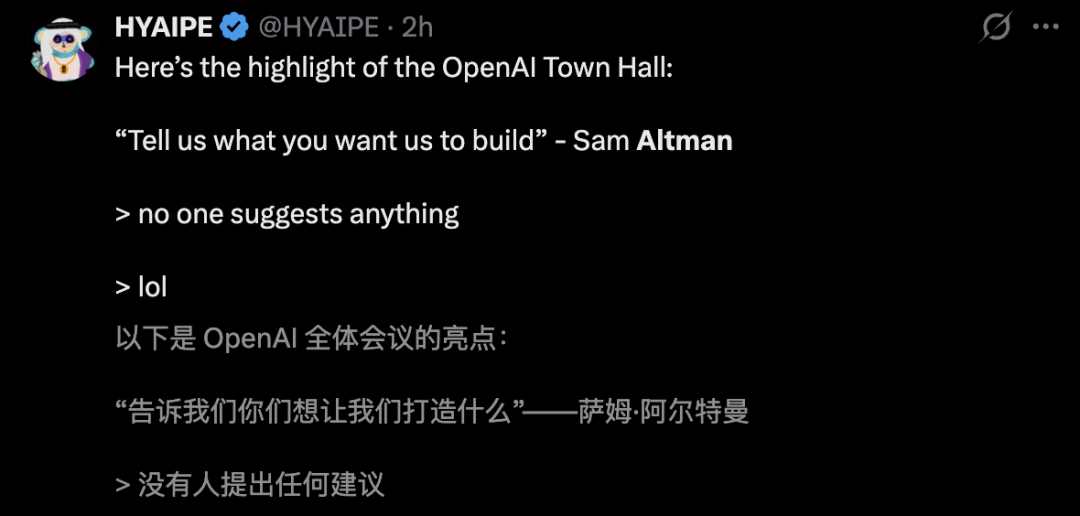 奥特曼张口问:大家希望OpenAI打造什么?突然间,全场非常安静没人吱声。