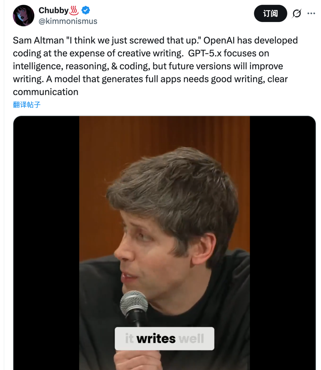 要知道不久之前,奥特曼刚刚说OpenAI把写作搞砸了,后面的版本会重视写作能力。