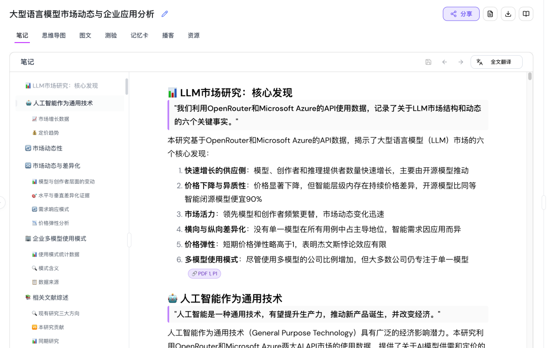 李文轩:我们聊过很多用户,没有太多人认为我们和 NotebookLM 是直接竞品。虽然乍一看功能上有些相似,但 NotebookLM 的产品设计理念是为研究和生成做优化,比如对大量文档做查询、对话,或生成研究报告等场景。