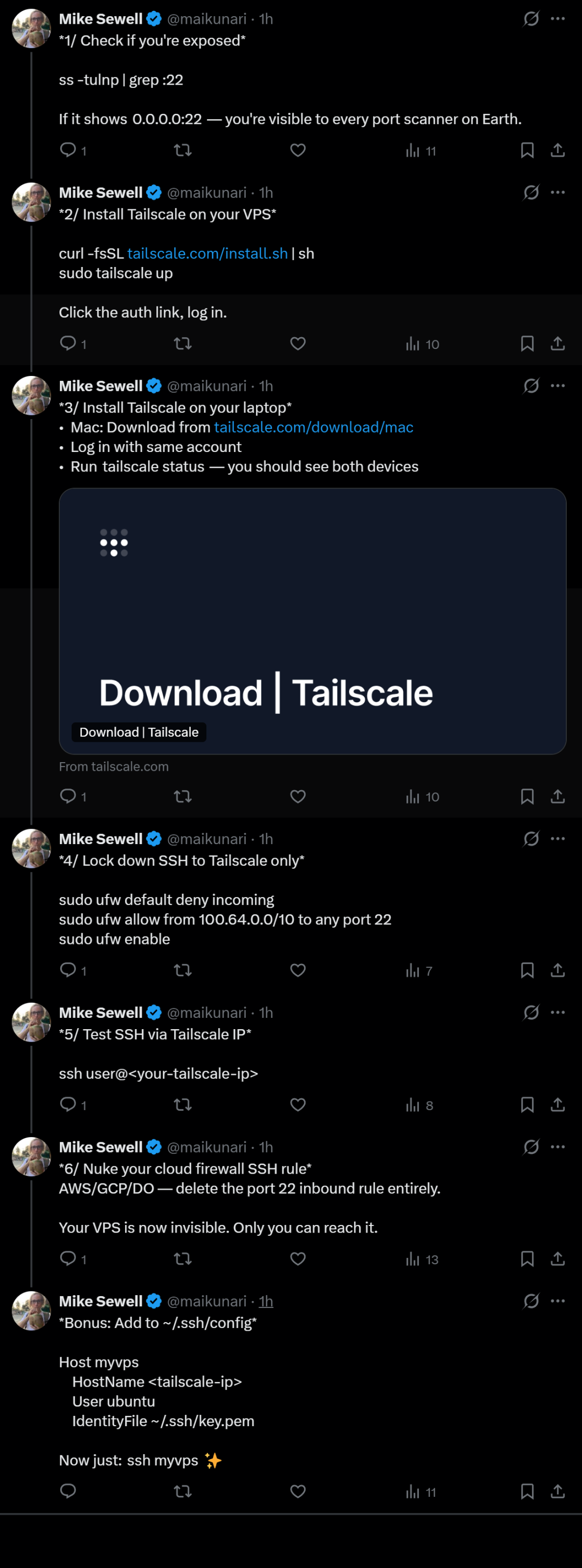 还有人提议说,可以用Tailscale保护你的VPS,下面这个方法,也只需要10分钟。