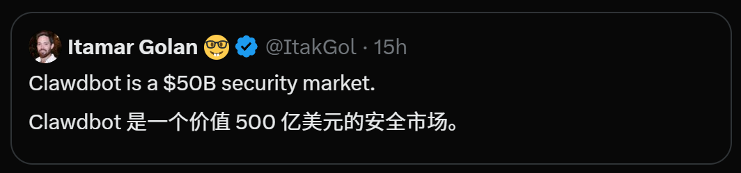 也是因为风险太大,可以说,ClawdBot是一个价值500亿美元的安全市场