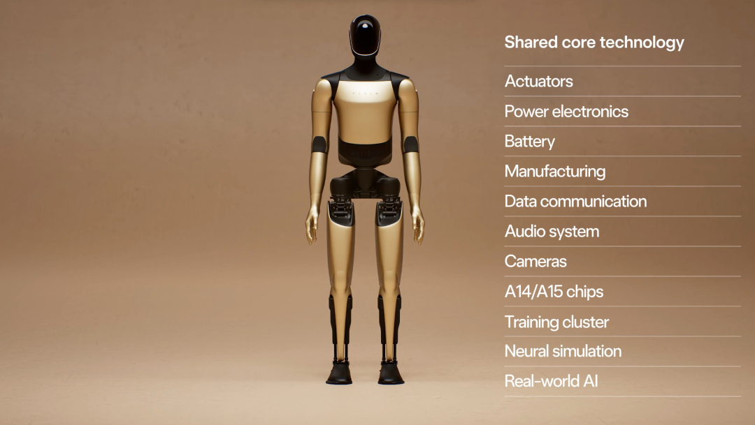 包括执行器、电力系统、电池、制造工艺和自动化产线经验、数据通信、音频系统、摄像头、特斯拉自研芯片、训练集群以及仿真系统和AI算法等。