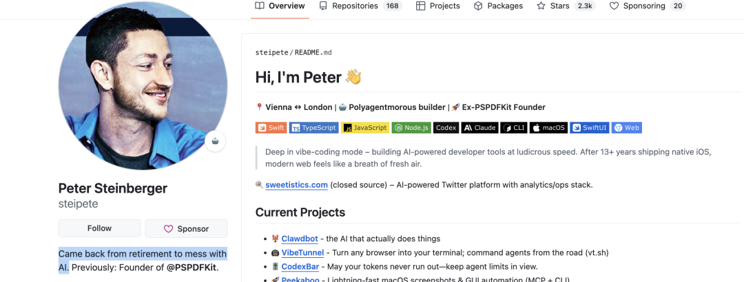 Peter Steinberger:你也知道,都说工作四年就该歇一年,我却连轴转了13年,所以那三年,我基本就是摆烂状态。直到去年四月,突然就重新找回了做事的热情。