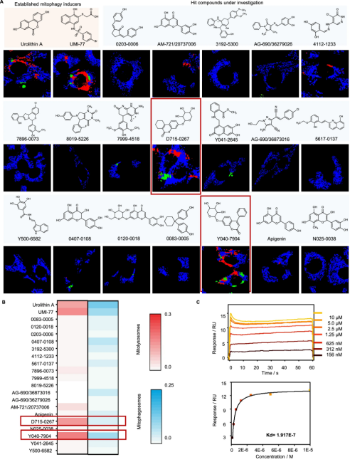 图 6. AI-FM 筛选出化合物 Y040-7904 作为潜在的线粒体自噬诱导剂。