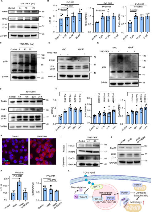 图 7. Y040-7904 通过 SIRT1/FoxO3 通路诱导线粒体自噬。