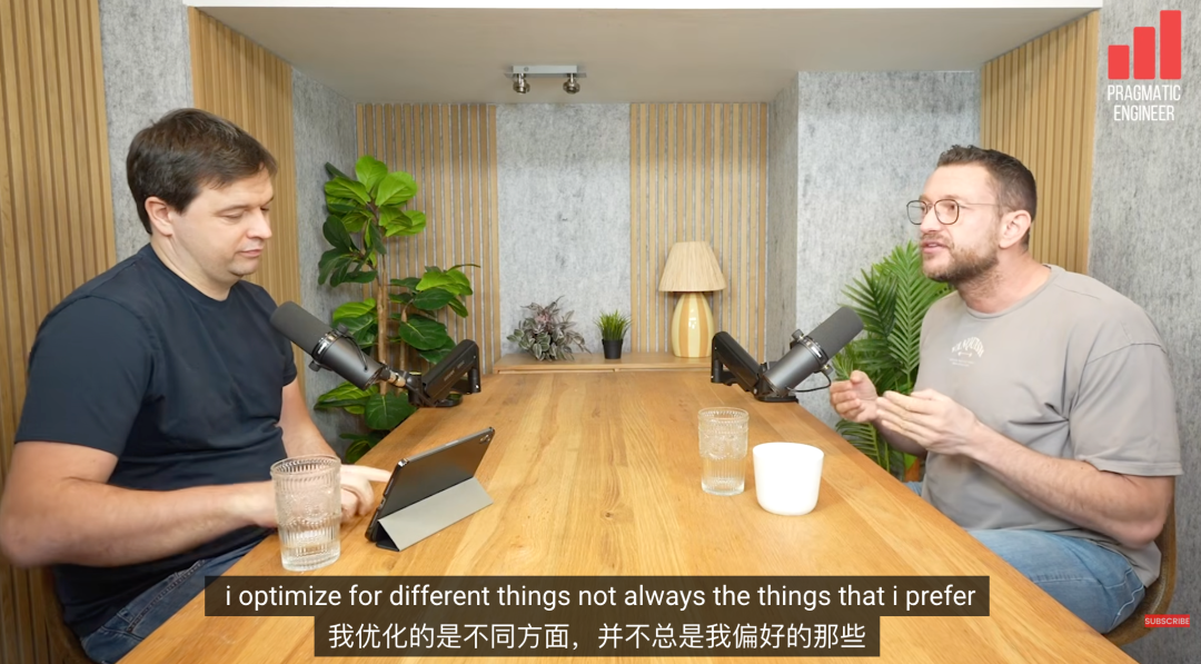 「我更喜欢用Codex。因为Codex会安静地读10分钟代码,然后去做长时间任务。Claude Code太快了,经常要回来问东问西,打断我的思路。」