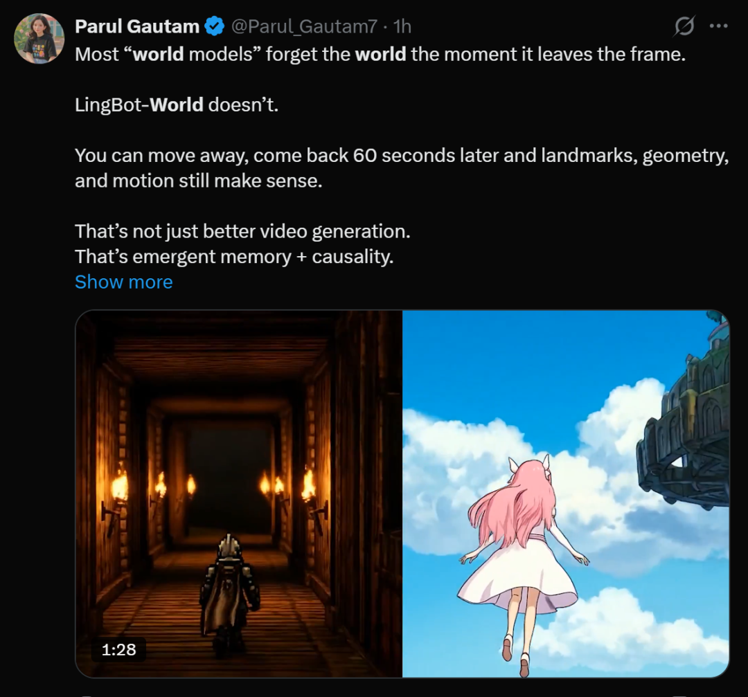更耐人寻味的是,LingBot-World在X上发布后,Genie甚至宣布将于近期开源。