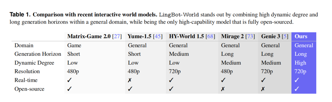 在可交互性、生成质量、物理一致性和生成时长上,LingBot-World都能全面对标Genie 3。