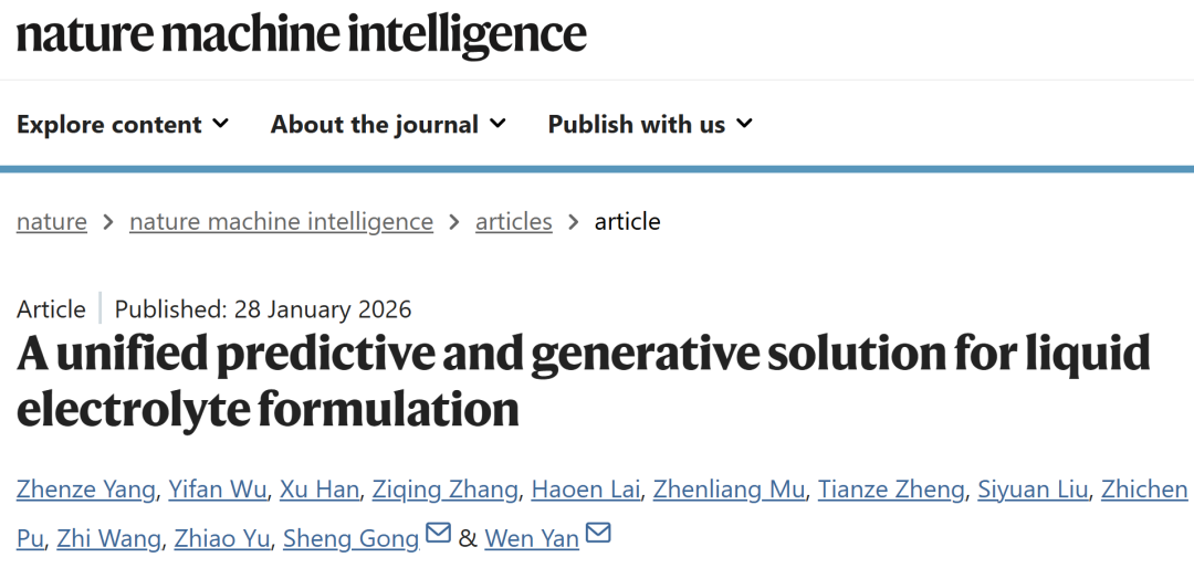 Yang, Z., Wu, Y., Han, X. et al. A unified predictive and generative solution for liquid electrolyte formulation. Nat Mach Intell (2026).