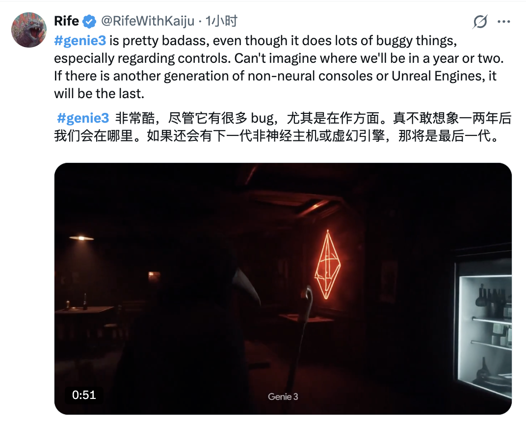 就像下面这位网友说的那样,哪怕问题不少、体验粗糙,它依旧承接住了不少人对下一代虚拟世界引擎的想象: