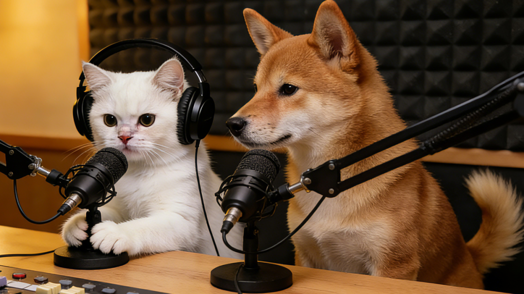 比如想要出一期创意的播客视频,上传一张猫狗合照,输入你的脑洞指令。